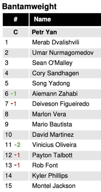 W dywizji koguciej Umar Nurmagomedov i Sean O’Malley zachowali swoje pozycje, odpowiednio 2. i 3.