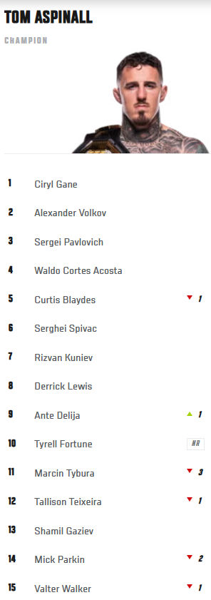 Do sporych przetasowań doszło też w rankingu kategorii ciężkiej. Wszystko za sprawą zwycięstwa jednogłośną decyzją debiutującego w oktagonie Tyrella Fortune’a z Marcinem Tyburą.