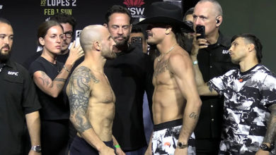 Rozpędzony serią siedemnastu aż zwycięstw Rinat Fakhretdinov (22-2-1) na początku walki posłał Elizeu Zaleskiego (24-7-1) na deski, ale w końcówce walczył o przetrwanie – i przetrwał, ale pojedynku nie wygrał.